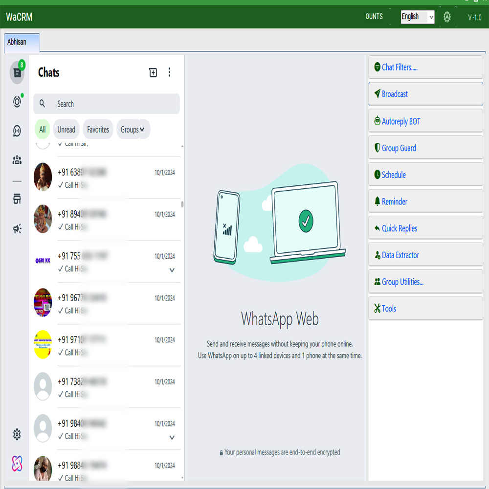 Unlock the full potential of WhatsApp as a business tool, effortlessly managing your contacts, conversations, and conversions all within a single interface. With intuitive features tailored for professionals, stay organized with advanced contact segmentation, real-time message tracking, and customizable templates for streamlined communication.