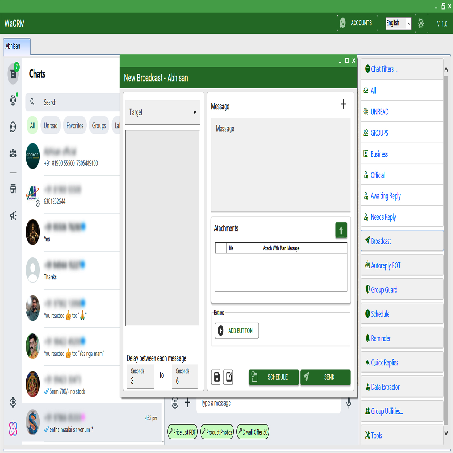 WaCRM be your most powerful assistant for your Business marketing and sales via WhatsApp Web.