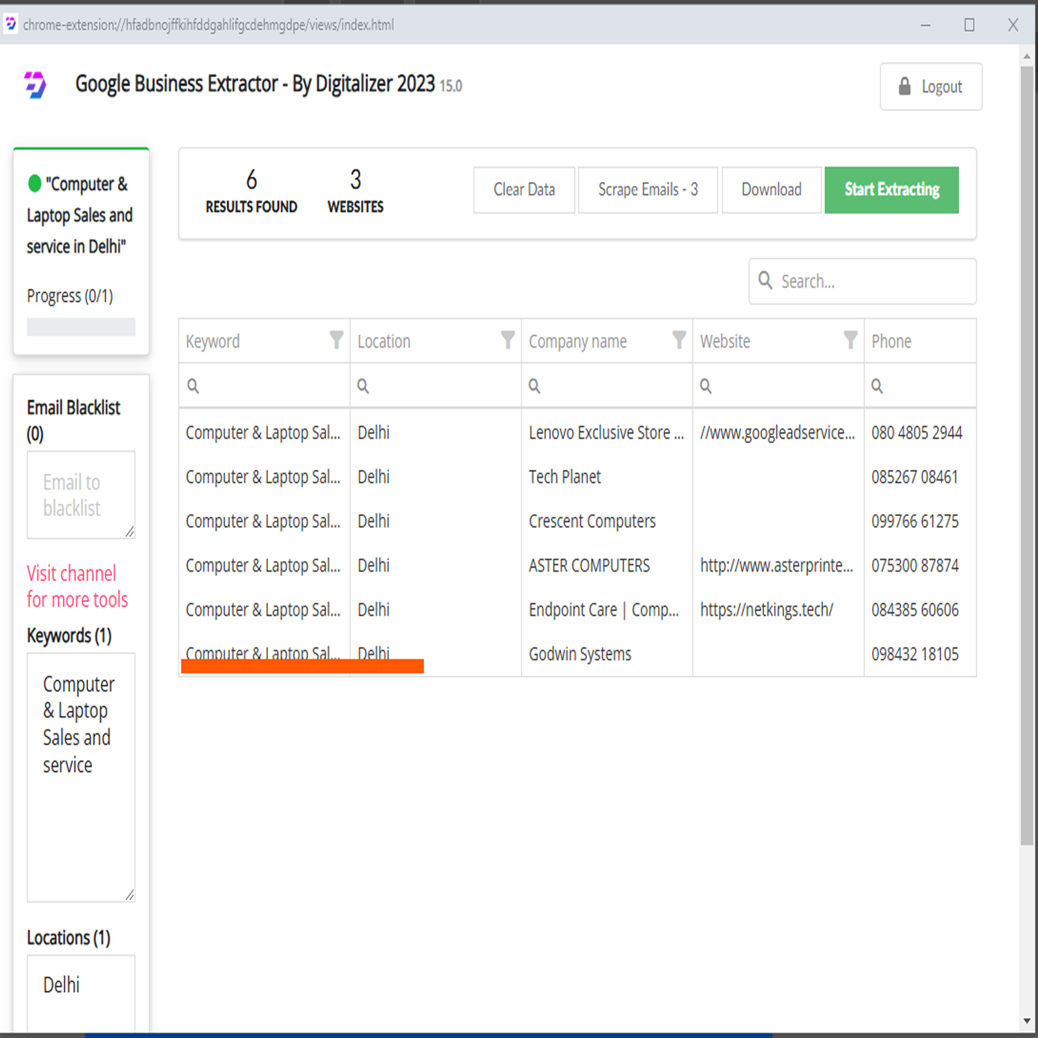 Google Business Extractor – This is a Chrome extension that can extract data from google maps website without API. The advantage is that is can extract without API and can extract all the contacts without any limitations. The keyword also supports multiple keywords and locations. You don’t need to spend your time sitting in front of the computer. just copy and paste the list of keywords and locations and the software will do the work. The software can even extract the email addresses by visiting the websites and checking for emails.